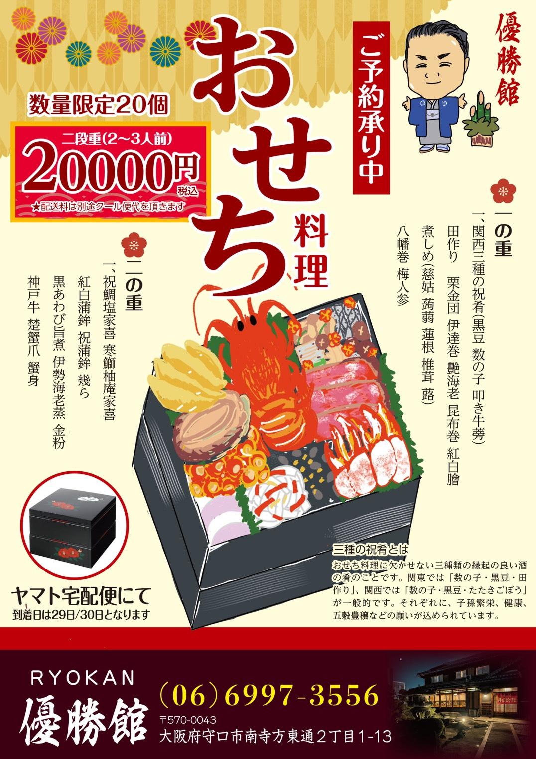 旅館のお節料理を限定20個のみ販売いたします。12月7日迄の先着予約です。
